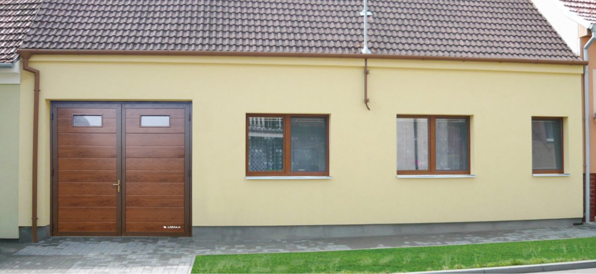 Dvojkrídlové garážové brány s oknami